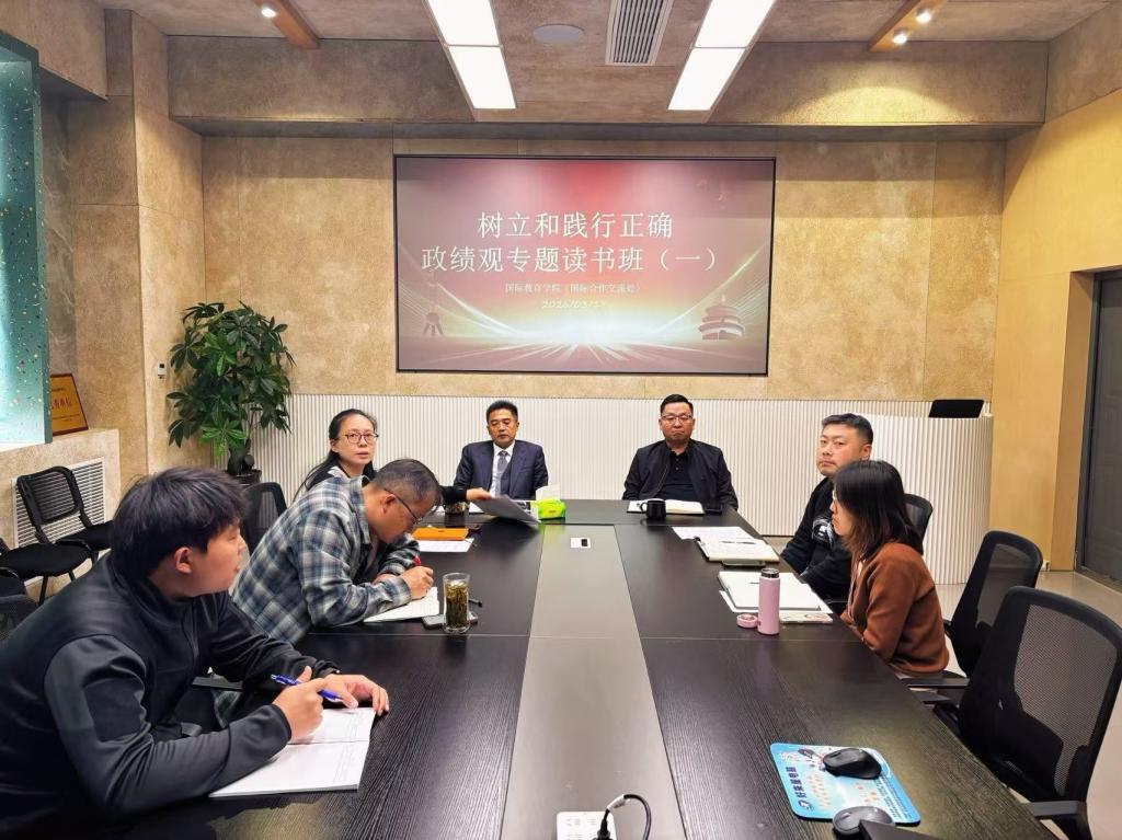 2026年3月17日至18日,国际教育学院(国际合作交流处)党委领导班子在8307会议室连续举办两期“树立和践行正确政绩观”专题读书班。学院领导班子成员全程参加,部分骨干教师列席。活动以“读原著、学原文、悟原理”为主线,通过书记领学、集中自学、交流研讨等形式,推动正确政绩观入脑入心。