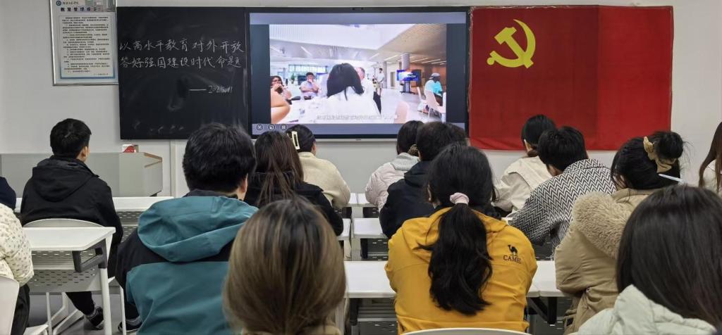本期微党课由复旦大学、厦门大学、西北农林科技大学、华南理工大学联合主办,紧扣“高水平教育对外开放”核心主题,以“引进来”与“走出去”统筹推进为主线,聚焦提升高等教育国际影响力。课程通过四所高校在扩大开放合作、深化国际交流、参与全球教育治理等领域的鲜活实践案例,生动展现了我国高校主动服务国家战略、勇担教育强国使命的责任与作为,为全体党员呈现了一堂兼具思想深度、理论高度与实践价值的专题学习课。收看过程中,师生党员聚精会神、认真记录,深刻感悟我国高等教育对外开放取得的显著成就,对教育对外开放的时代意义、实践路径有了更清晰的认知。