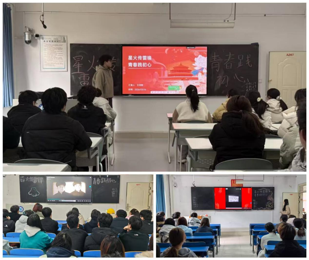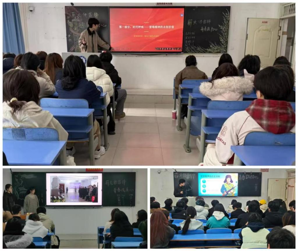 活动伊始,各班团支书依次走上讲台,围绕“雷锋精神的时代价值与青年使命”开展专题宣讲。宣讲过程中,团支书通过PPT展示、经典影片片段播放、图文解析等形式,系统讲述雷锋同志的生平事迹,从“螺丝钉”精神的坚守,到助人为乐的善举;从爱岗敬业的执着,到艰苦奋斗的品格,全方位解读雷锋精神的核心要义。