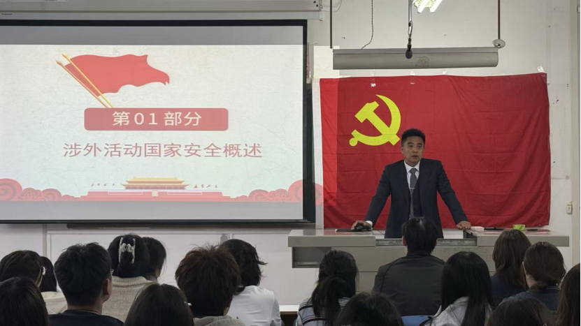 为做好入党积极分子的培养教育工作,增强其国家安全意识,筑牢在涉外活动中安全防线、履行国家安全责任,2026年3月31日晚上,国际教育学院党委书记刘汝举为学院入党积极分子讲授《涉外活动中的国家安全》专题党课。