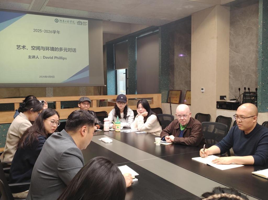 2026年4月8日下午,国际教育学院在8307会议室开展了“艺术、空间与环境的多元对话”主题交流活动。活动邀请了堪培拉大学David Phillips,视觉传达相关专业教师参加了此次交流活动。