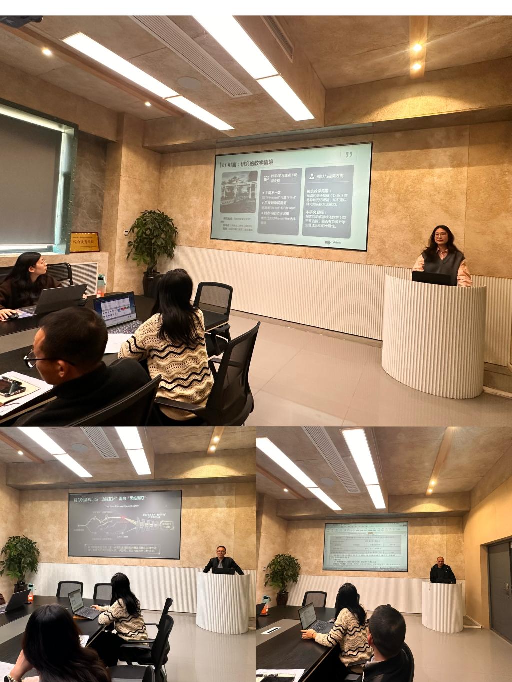 活动中,杜柯含老师结合自身论文发表经历,围绕研究框架构建、研究路径实施、核心观点提炼等关键环节,分享了学术写作与成果凝练的实践经验。宋新克老师、陈文峰老师分别就各自教育部项目申报书内容进行汇报与展示。与会教师围绕汇报内容展开深入研讨,交流思路、碰撞观点,现场氛围热烈。