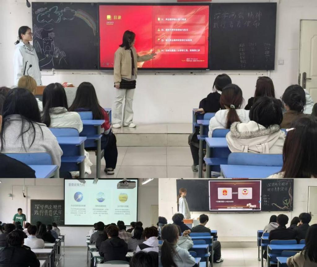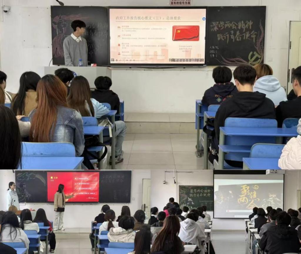 为深入学习贯彻2026年全国两会精神,引导广大团员青年坚定理想信念、勇担时代使命,国际教育学院组织全体大一班级采用联合举办、分组进行的方式,在教室集中开展“深学两会精神,践行青春使命”主题团日活动。
